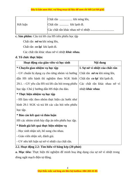 2.1. Hoạt động 2.1: Sự nở vì nhiệt của chất rắn (30 phút)