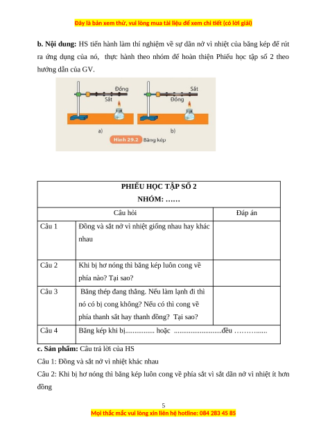 *Chuyển giao nhiệm vụ học tập Bài 29. Sự nở vì nhiệt