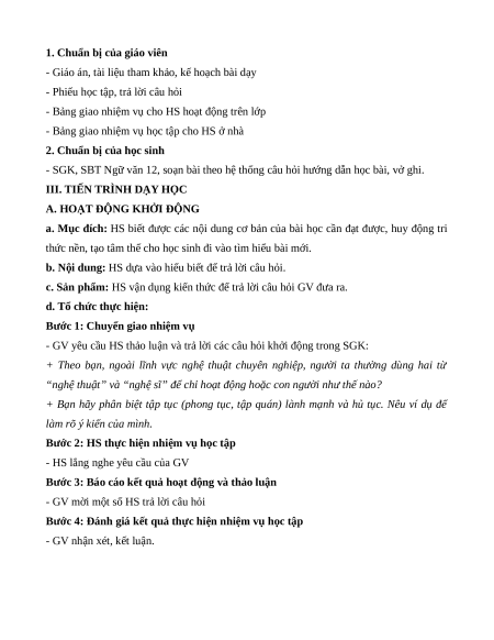 - Có cái nhìn tỉnh táo về hiện thực; biết trân trọng những quyết định, hành động, hướng về lí tưởng cao đẹp. II. Chuẩn bị