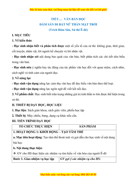(Trích Đăm Săn, Sử thi Ê-đê) I. MỤC TIÊU 1. Về kiến thức