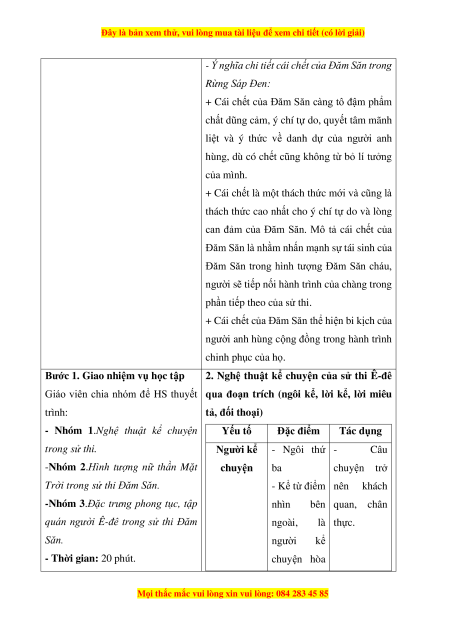 - Nghệ thuật kể chuyện của sử thi Ê-đê qua đoạn trích: ngôi kể, lời kể, lời miêu tả, đối thoại.