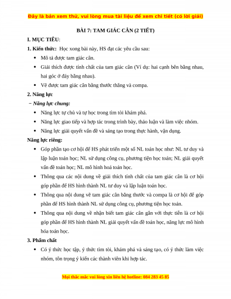 BÀI 7: TAM GIÁC CÂN (2 TIẾT)