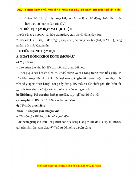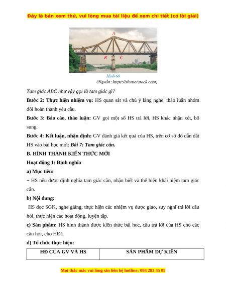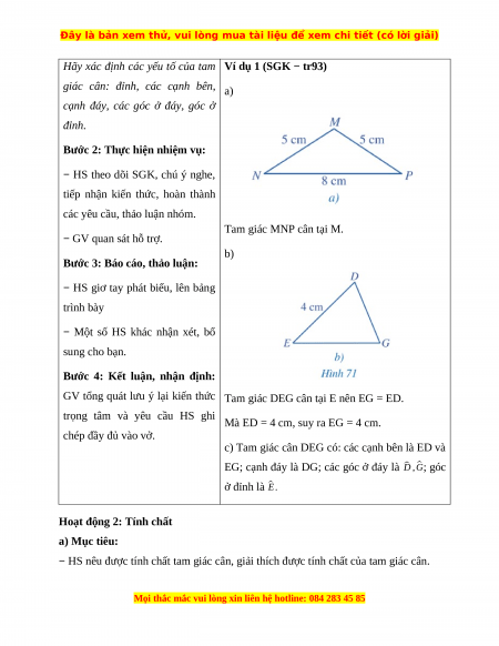 Giáo án Tam giác cân Toán 7 Cánh diều