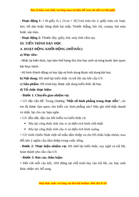 ấ A4 ( 21cm × 29,7cm) màu tùy ý; gi y ấ màu các lo i ạ ; kéo, hồ dán ho c ặ băng dính hai m t ặ ; Thư c ớ th ng, ẳ bút chì, compa, bút màu ho c s ặ áp màu. - Hoạt đ ng 2 ộ : Thư c dây; ớ gi y ấ , bút; máy tính c m ầ tay.