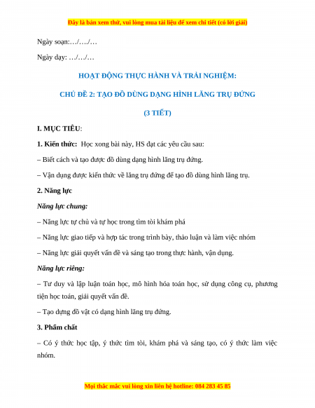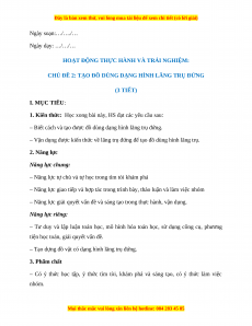 CHỦ ĐỀ 2: TẠO ĐỒ DÙNG DẠNG HÌNH LĂNG TRỤ ĐỨNG (3 TIẾT) I. MỤC TIÊU: