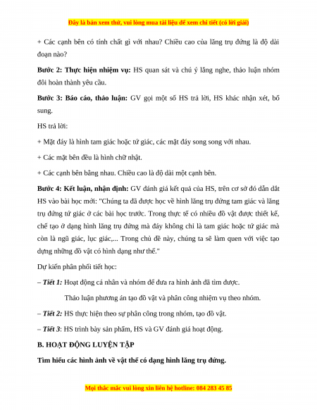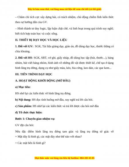 Giáo án Tạo đồ dùng dạng hình lăng trụ đứng Toán 7 Cánh diều