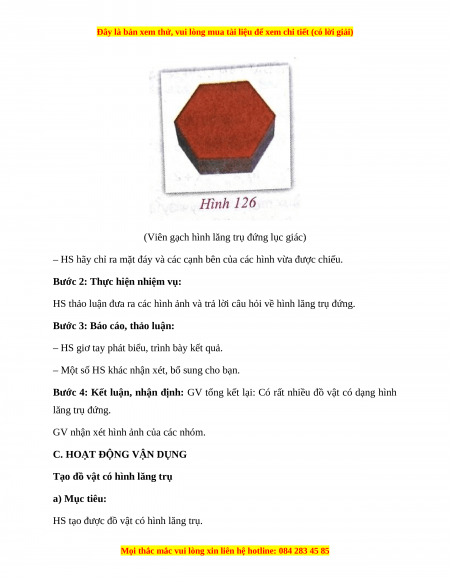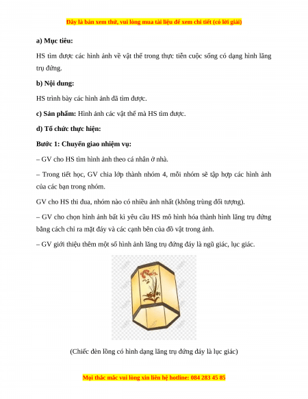 HS tìm được các hình ảnh về vật thể trong thực tiễn cuộc sống có dạng hình lăng trụ đứng. b) Nội dung: