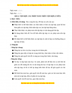 ● Thực hiện được các phép toán trên tập hợp và vận dụng giải bài tập.