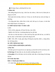 - SGK, tài liệu giảng dạy, kế hoạch bài dạy, máy chiếu.