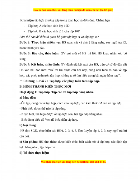 Giáo án Tập hợp. Các phép toán trên tập hợp Toán 10 Cánh diều