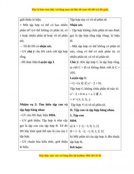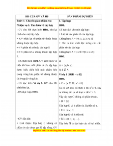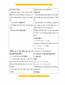 - Ôn tập, củng cố về tập hợp, cách cho tập hợp, các kiến thức cơ bản về tập hợp.