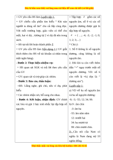 ế được số nguyên dư ng ơ và số nguyên âm. + Bi u di ể n đ ễ ư c ợ s nguyên không quá l ố n ớ trên tr c s ụ . ố + So sánh đư c ợ hai s nguyên cho t ố rư c ớ - Năng l c ự chung: Năng l c ự tư duy và l p ậ lu n ậ toán h c; ọ năng l c ự giao ti p ế toán h c ọ tự h c; ọ năng l c ự gi i ả quy t ế v n ấ đề toán h c, ọ năng l c ự tư duy sáng t o, năng l ạ c ự h p t ợ ác. 3. Ph m ẩ chất - Phẩm ch t ấ : Bồi dư ng h ỡ ng t ứ hú h c ọ t p, ý t ậ h c l ứ àm vi c nhóm ệ , ý th c t ứ ìm