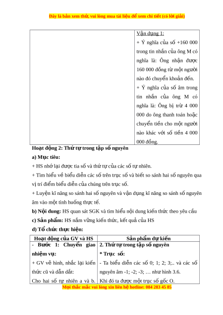 ộ dung: HS quan sát hình nh ả trên màn chi u ế và SGK để tìm hi u ể n i ộ dung ki n t ế h c t ứ heo yêu cầu c a ủ GV. c) Sản ph m ẩ : + HS nh n bi ậ t ế và đ c ọ vi t ế đư c s ợ nguyên ố âm, s nguyên d ố ư ng. ơ + HS hoàn thành đư c ph ợ n L ầ uy n t ệ p và ậ V n d ậ ng. ụ