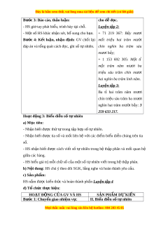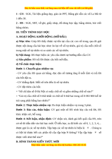 ế so sánh hai số tự nhiên có nhi u ề ch ữ s ố và ch n ọ đư c ợ s ố l n ớ nh t ấ , nhỏ nh t ấ trong dãy s cho t ố rư c. ớ 2. Năng l c ự Năng l c ự riêng: - V n d ậ ng ụ các ki n t ế h c gi ứ i ả bài toán có có n i ộ dung th c ự ti n. ễ Năng l c ự chung: Năng l c ự mô hình hóa toán h c, ọ năng l c ự t ư duy và l p ậ lu n ậ toán h c; ọ năng l c ự giao ti p ế toán h c; ọ năng l c ự gi i ả quy t ế v n ấ đề toán h c, ọ năng l c t ự duy s ư áng t o, năng ạ l c h ự p t ợ ác. 3. Ph m ẩ chất - Bồi dư ng ỡ h ng t ứ hú h c t ọ p, ậ ý th c l ứ àm vi c nhóm ệ , ý th c t ứ ìm tòi, khám phá và sáng t o cho H ạ S ⇒ đ c l ộ p, ậ t t ự in và t ch ự . ủ - Chăm chỉ tích c c ự xây d ng ự bài, chủ đ ng ộ chi m ế lĩnh ki n ế th c ứ theo sự hư ng d ớ ẫn c a G ủ V.