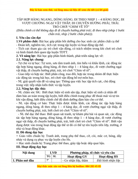 + Học sinh chuẩn bị: Trang phục thể thao, giày tập hoặc dép quai hậu.