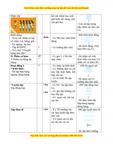 - NL vận động cơ bản: Thực hiện được khẩu lệnh, các động tác tập hợp hàng