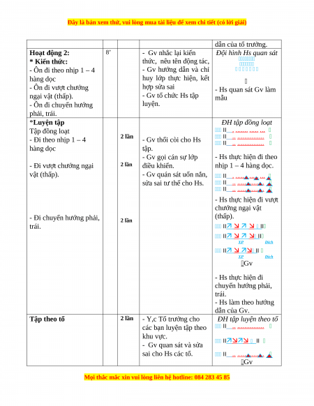 chướng ngại vật (thấp), II .. ............... đi chuyển hướng phải, trái. II .. ............... II II XP Đích - Từng tổ lên thi đua, trình diễn