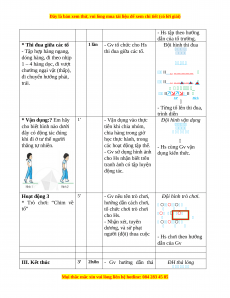 Giáo án Tập hợp hàng ngang, dóng hàng. Đi theo nhịp 1-4 hàng dọc. Đi VC ngại vật thấp. Đi chuyển hướng trái, phải Gdtc 3 Chân trời sáng tạo