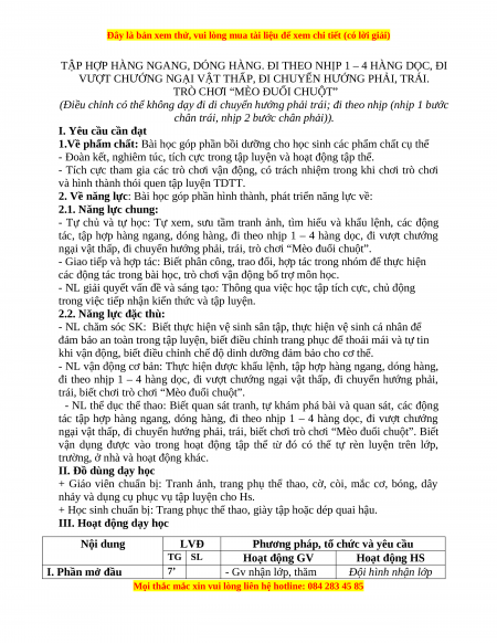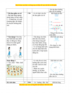 Giáo án Tập hợp hàng ngang, dóng hàng. Đi theo nhịp 1-4 hàng dọc. Đi VC ngại vật thấp. Đi chuyển hướng phải trái Gdtc 3 Chân trời sáng tạo