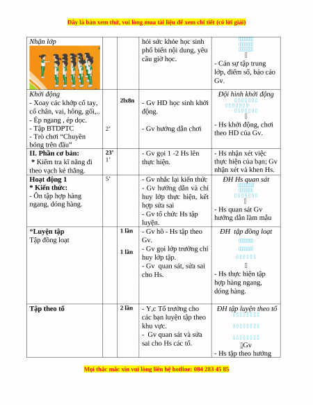 + Học sinh chuẩn bị: Trang phục thể thao, giày tập hoặc dép quai hậu.