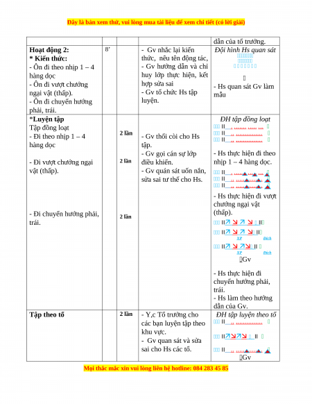 chướng ngại vật (thấp), II .. ............... đi chuyển hướng phải, trái. II .. ............... II II XP Đích - Từng tổ lên thi đua, trình diễn