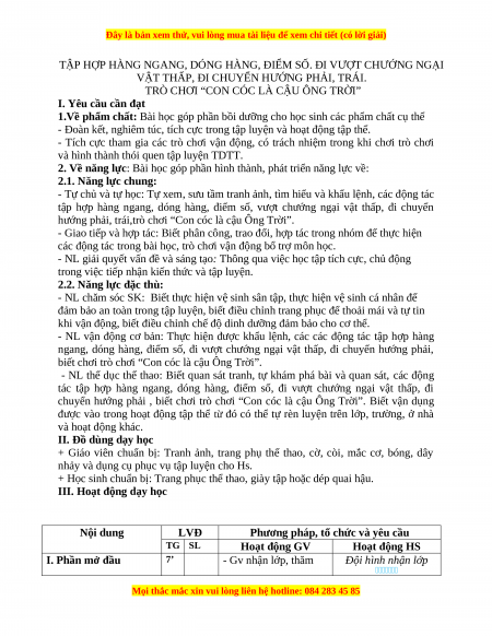 Giáo án Tập hợp hàng ngang, dóng hàng, điểm số. Đi chuyể hướng ngại vật thấp. Đi chuyển hướng phải, trái Gdtc 3 Chân trời sáng tạo