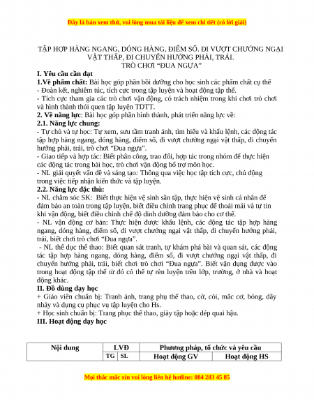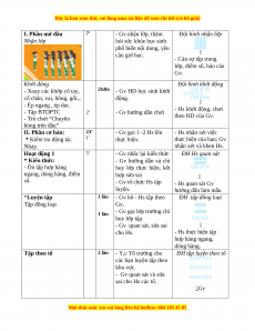 Giáo án Tập hợp hàng ngang, dóng hàng, điểm số. Đi vượt chướng ngại vất thấp. Đi chuyển hướng phải, trái Gdtc 3 Chân trời sáng tạo