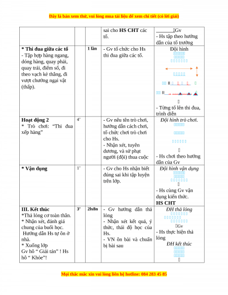 + Học sinh chuẩn bị: Trang phục thể thao, giày tập hoặc dép quai hậu.
