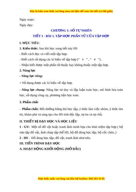 Đây là bản xem th , vu ử i lòng mua tài li u ệ đ xe ể m chi ti t ế (có l i ờ gi i ả ) Ngày so n: ạ Ngày d y: ạ CHƯ N Ơ G 1: S Ố TỰ NHIÊN