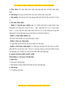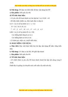 ậ ở trong Hình 1 t o ạ thành m t ộ t p ậ h p. ợ M i ỗ đồ v t ậ trên bàn đư c ợ g i ọ là m t ộ phần t c ử a/ ủ thu c t ộ p ậ h p đó”. ợ + Tư ng ơ t , ự “các b n ạ trong tổ c a ủ em t o ạ thành m t ộ t p ậ h p”, “C ợ ác số t ự nhiên l n ớ h n ơ 3, nh h ỏ n 12 t ơ o ạ thành m t ộ t p h ậ p”. ợ Hoạt đ ng 2: ộ Các kí hi u ệ a. Mục đích: + HS bi t ế và s d ử ng ụ đư c hai ợ cách mô t ( ả vi t ế ) m t ộ t p ậ h p. ợ M i ọ thắc m c