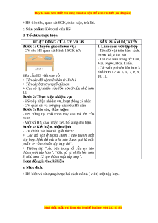 ậ trên bàn ở Hình 1 + Tên các b n t ạ rong t c ổ a em ủ + Các số t ự nhiên v a ừ l n ớ h n ơ 3 v a ừ nh ỏ h n ơ 12. Bư c ớ 2: Th c hi ự n nhi ệ m ệ v : ụ - HS ti p nh ế n ậ nhi m ệ v , ụ ho t ạ đ ng cá ộ nhân