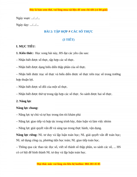 BÀI 2: TẬP HỢP R CÁC SỐ THỰC (3 TIẾT) I. MỤC TIÊU: