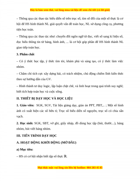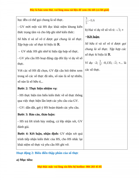 Hoạt động 1: Số thực a) Mục tiêu: