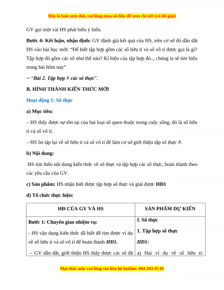 ‒ HS ôn tập lại về số hữu tỉ và số vô tỉ để làm cơ sở giới thiệu tập số thực R. b) Nội dung: