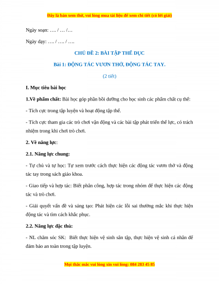 Bài 1: ĐỘNG TÁC VƯƠN THỞ, ĐỘNG TÁC TAY. (2 tiết)
