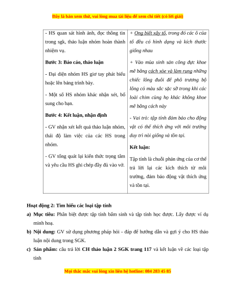 c) Sản phẩm: câu trả lời CH thảo luận 1 SGK trang 116 và kết luận về khái niệm tập tính ở động vật.