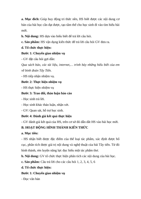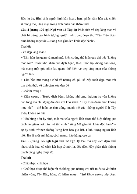 cục, phân tích được giá trị nội dung và nghệ thuật của bài Tây tiến. Từ đó