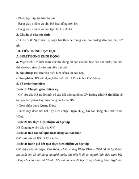 Giáo án Tây Tiến Ngữ Văn 12 Kết nối tri thức