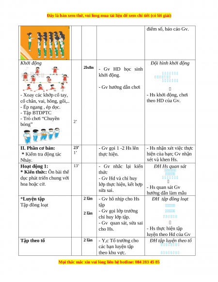+ Học sinh chuẩn bị: Trang phục thể thao, giày tập hoặc dép quai hậu.