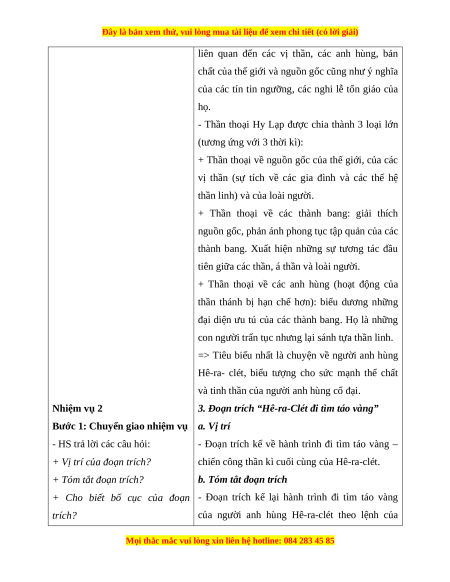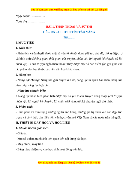 HÊ – RA – CLET ĐI TÌM TÁO VÀNG Tiết:…… I. MỤC TIÊU 1. Kiến thức