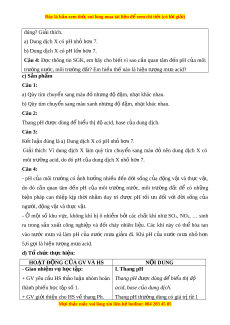 ể sang màu đỏ nên dung d ch ị X có môi trư ng aci ờ d, do đó pH c a ủ dung d ch X ị nh h ỏ n 7. ơ Câu 4: - pH c a ủ môi trư ng ờ có nh ả hư ng ở nhi u ề đ n ế đ i ờ s ng ố c a ủ đ ng ộ v t ậ và th c ự v t ậ , do đó cần quan tâm đ n ế pH c a ủ môi trư ng ờ nư c, ớ môi trư ng ờ đ t ấ để có nh ng ữ biện pháp can thi p ệ k p ị th i ờ nh m ằ duy trì đư c ợ pH t i ố u ư đ i ố v i ớ đ i ờ s ng ố c a ủ ngư i ờ , đ ng v ộ t ậ và th c ự v t ậ . - Ở m t ộ số khu v c, ự không khí bị ô nhi m ễ b i ở các ch t ấ khí nh ư SO2, NO2, … sinh ra trong s n ả xu t ấ công nghi p ệ và đ t ố cháy nhiên li u.