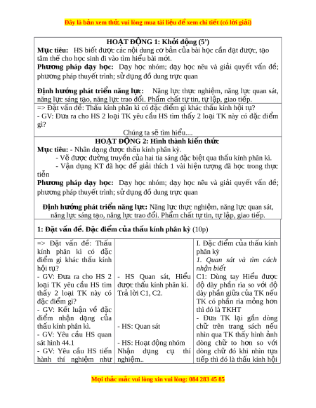 ự Năng l c ự th c ự nghi m ệ , năng l c ự quan sát, năng l c ự sáng t o, ạ năng l c t ự rao đ i ổ . Ph m ẩ ch t ấ t t ự in, t l ự p, gi ậ ao ti p. ế => Đ t ặ v n đ ấ : ề Th u kí ấ nh phân kì có đ c đi ặ m ể gì khác th u kí ấ nh h i ộ t ? ụ - GV: Đ a ư ra cho HS 2 lo i ạ TK yêu c u ầ HS tìm th y ấ 2 lo i ạ TK này có đ c ặ đi m ể gì? Chúng ta s t ẽ ìm hi u.... ể HOẠT Đ N