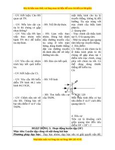 ính phân kì. độ dày ph n ầ rìa so v i ớ độ thấy 2 lo i ạ TK này có Tr l ả i ờ C1, C2. dày ph n ầ gi a ữ c a ủ TK n u ế đ c ặ đi m ể gì? TK có ph n ầ rìa m ng ỏ h n ơ - GV: K t ế lu n ậ về đ c ặ thì đó là TKHT đi m ể nh n ậ d ng ạ c a ủ - Đ a ư TK l i ạ g n ầ dòng thấu kính phân kì. - HS: Quan sát chữ trên trang sách n u ế - GV: Yêu c u ầ HS quan nhìn qua TK th y ấ hình nh ả sát hình 44.1 - HS: Ho t ạ đ ng nhóm ộ dòng chữ to h n ơ so v i ớ - GV: Yêu c u ầ HS ti n ế Nh n ậ d ng ụ