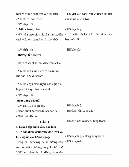 - HS viết vào bảng con và nhận xét bài - YC HS viết ao, chào. của mình và của bạn. - GV nhận xét
