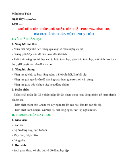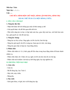 Giáo án Thể tích của một hình Toán lớp 5 Chân trời sáng tạo