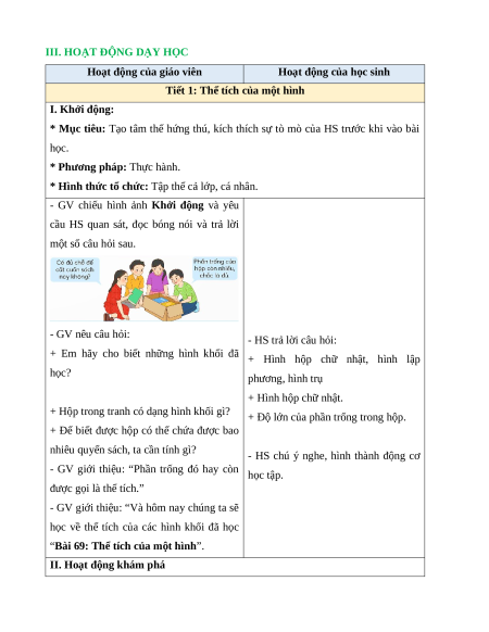 III. HOẠT ĐỘNG DẠY HỌC