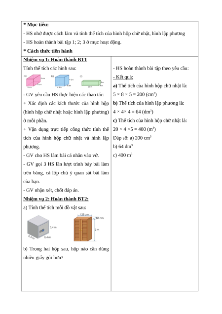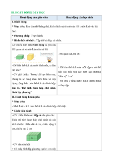 - Nhớ được cách tính thể tích của hình hộp chữ nhật. * Cách tiến hành: