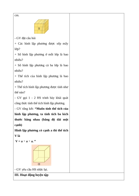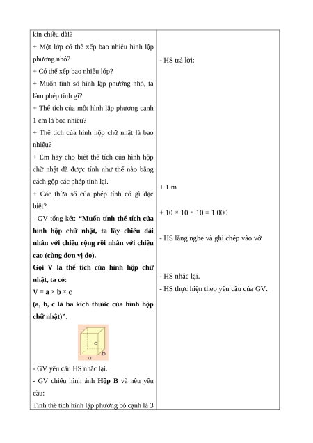 - Nhận biết được thể tích của hình hộp chữ nhật và hình lập phương.