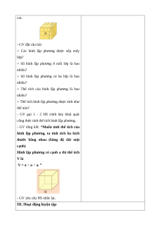Tính thể tích hình lập phương có cạnh là 3 cm. - GV đặt câu hỏi
