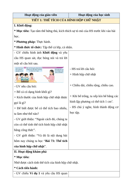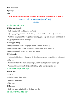 BÀI 73: THỂ TÍCH HÌNH HỘP CHỮ NHẬT (2 tiết)